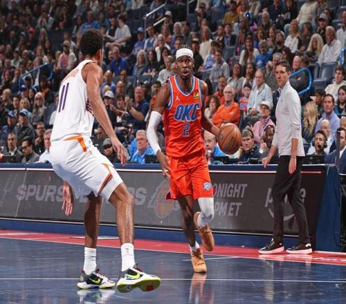雷霆过去15场比赛豪取15连胜联盟第一,太阳上一场客场108-105险胜森林狼。本场雷霆缺少哈尔滕施泰与乔等,太阳缺少布克、杰伦-格林。首节开局,雷霆率先取得11-2领先优势,阿伦与霍姆格伦对攻一记三分,太阳随后反扑追到差7分。雷霆多点开花不断碾压太阳,逐步扩大36-16领先20分优势,太阳回敬一波7-2攻势追分,首节结束雷霆38-23领先太阳。首节雷霆23中14超过6成准星,其中三分8中5,太阳被限制24中9不足4成准星,其中三分7中3。