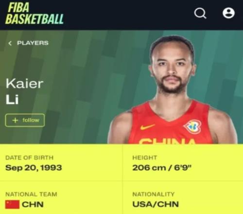 事实上,在FIBA官网上,李凯尔的国籍信息依旧是“中国”,他如果受到中国男篮的征召,依旧可以选择代表中国男篮出战。本赛季,李凯尔已经32岁,在NBA也变成了普通轮换球员。
